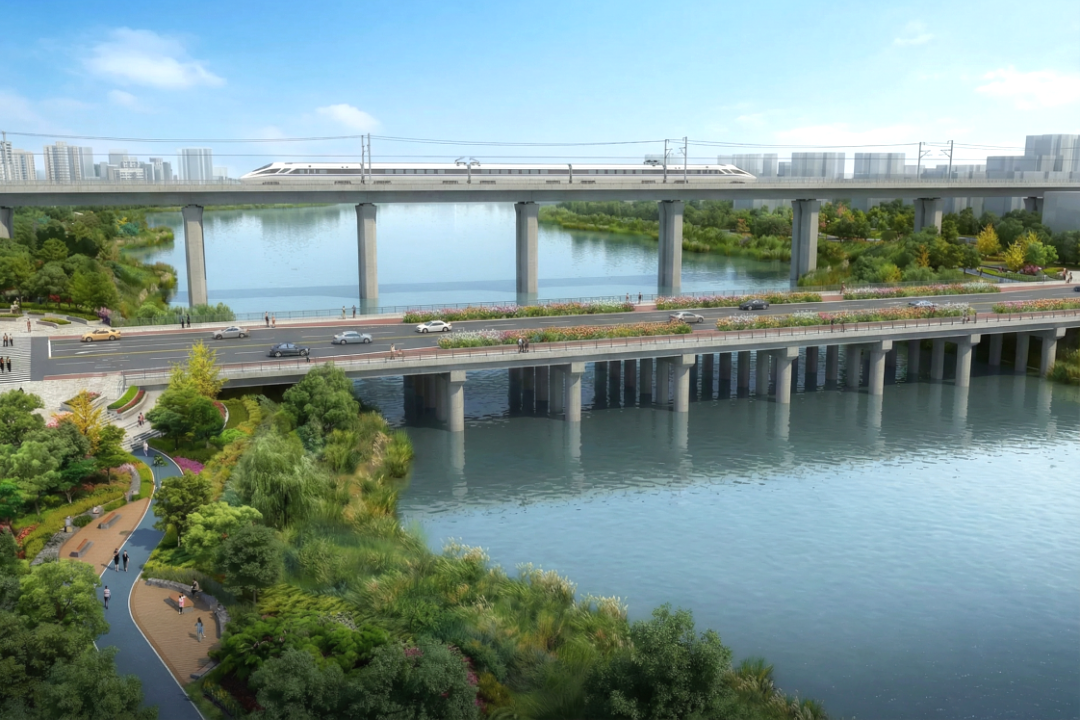 云湖路北起黃花澇路,南至墨家湖路,全長(zhǎng)約3.71公里。道路按城市次干路標(biāo)準(zhǔn)建設(shè),設(shè)計(jì)時(shí)速40公里,雙向4至6車道,紅線寬度30米。全線將新建兩座橋梁,宛若玉帶輕盈跨越任凱湖與麥家湖,不僅打通了區(qū)域交通的關(guān)鍵節(jié)點(diǎn),更以匠心勾勒出城市生態(tài)與發(fā)展交融的畫(huà)卷。