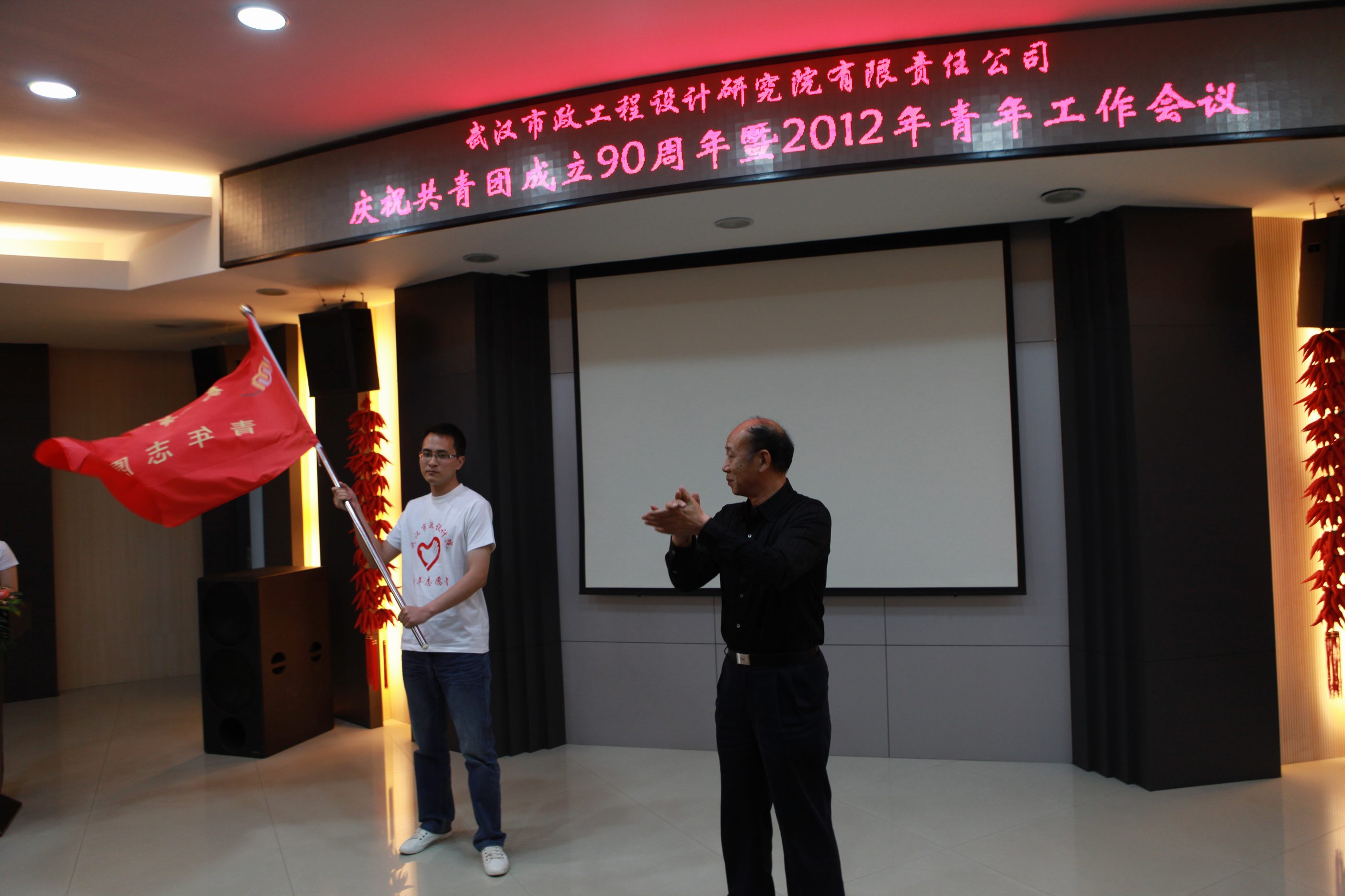 ??? 4月27日下午,公司在二樓會議室召開慶祝中國共青團成立90周年暨2012年青年工作會議。市城建委黨組副書記、副主任熊明亮,共青團武漢市委副書記魏靜應(yīng)邀出席,公司領(lǐng)導參加了本次會議。