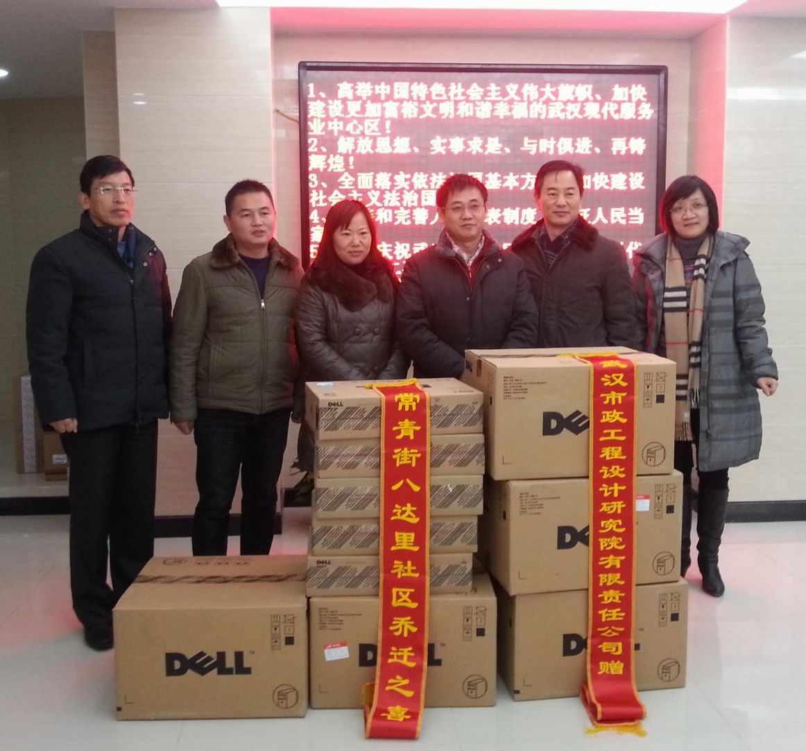 ??? 12月25日,公司為八達里社區(qū)喬遷,捐贈了五臺新臺式電腦,提供給社區(qū)辦公使用。武漢市政院董事長柯昌春將電腦送到八達里社區(qū)書記肖漢梅手中的時候,肖書記代表八達里社區(qū)的全體社區(qū)工作者向公司表示深深的謝意,感謝共建單位和領(lǐng)導(dǎo)們對社區(qū)工作的大力支持。